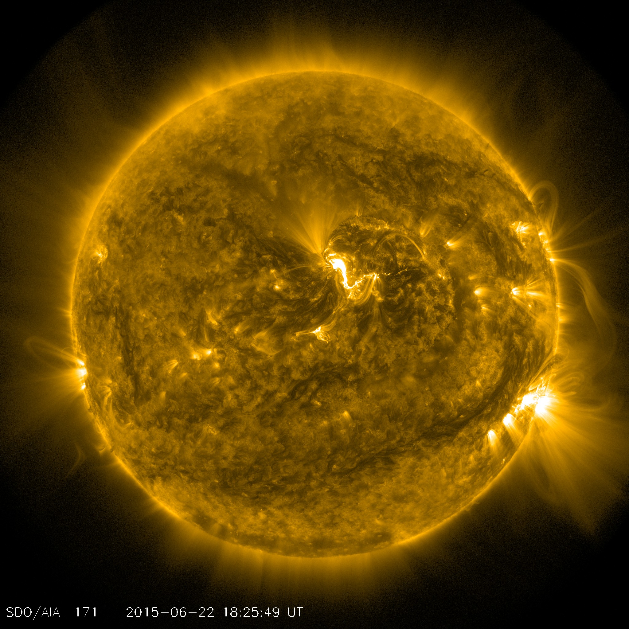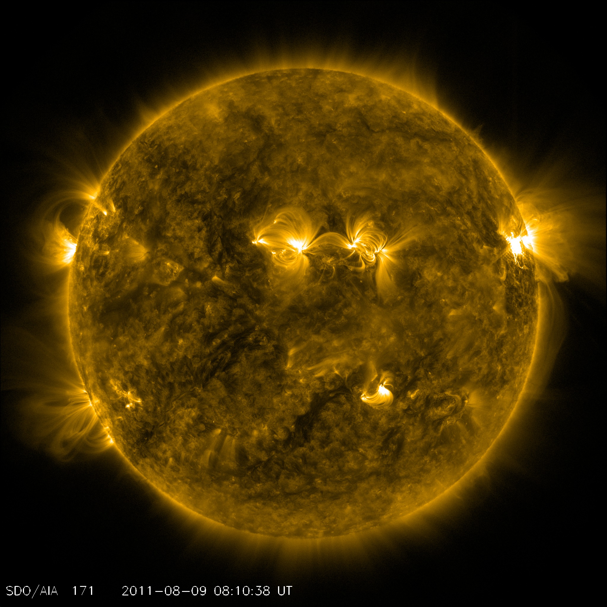 Print images, pile them, put one at a time on the table, have participants judge if the magnetic configuration is explosive or not. Images: SDO/SOHO