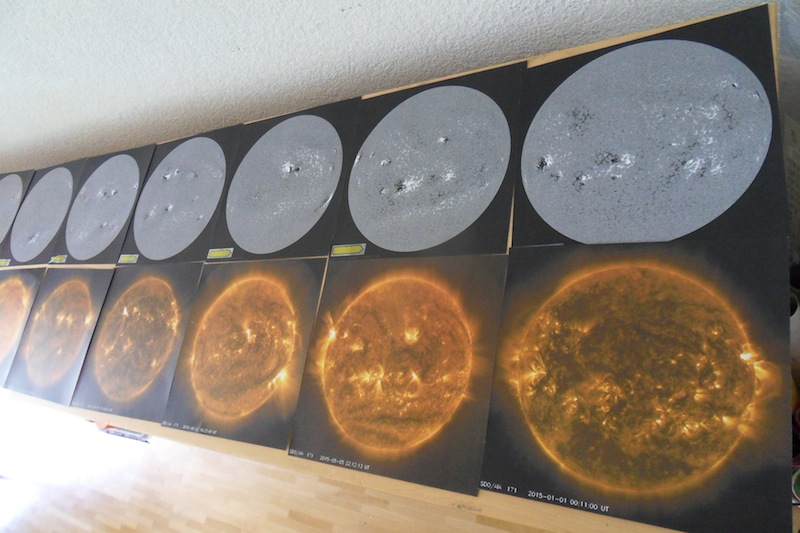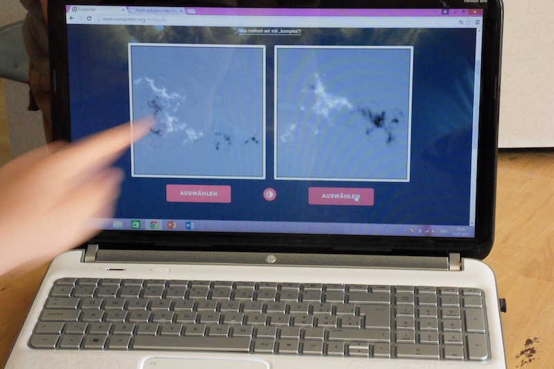 During the first year of the project, educational materials related to the Sun, space weather and solar flare forecasting have been developed and tested addressing children from the age of 5 to 15. From the age of 7, children work with HMI data as used by the FLARECAST project. Starting from the age of 10, children are introduced to the SunSpotter.org citizen science project. All materials are available on this website for everyone to conduct their own workshops. They have also been used in other situations such as talks and science fairs and as give aways.